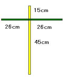皮付き竹ひご52cm(真中26cmのところに印をつける) ひのき棒60cm(15cmのところに印をつける) |